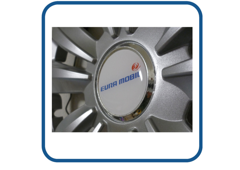 Eura mobil doming naafstickers. Hoge kwaliteit doming Epoxy naafstickers in verschillende full colour designs en 3D.