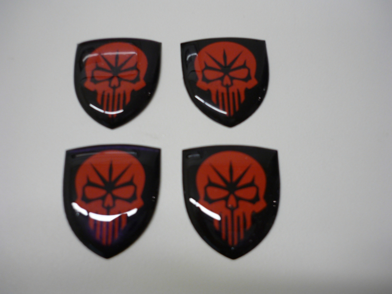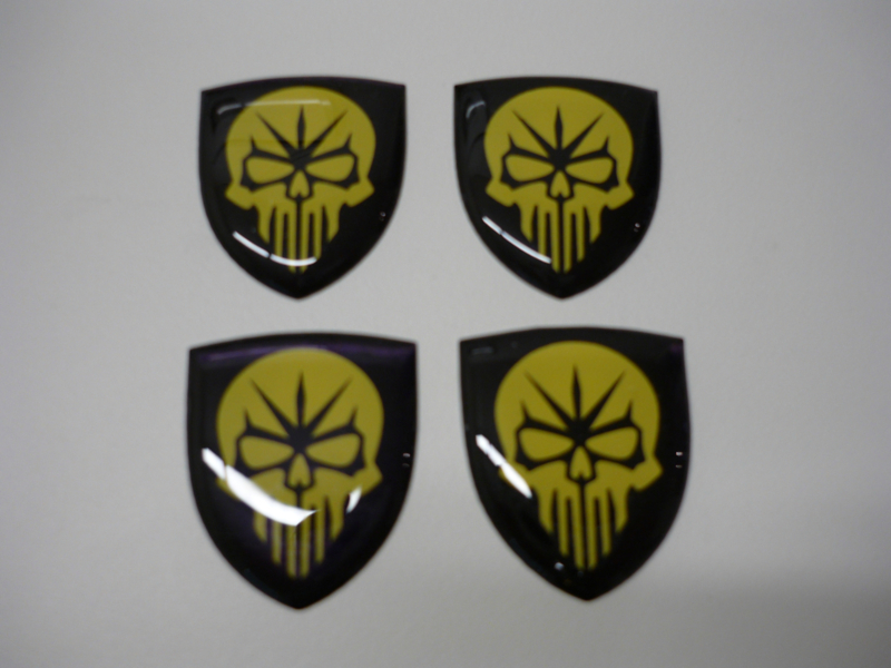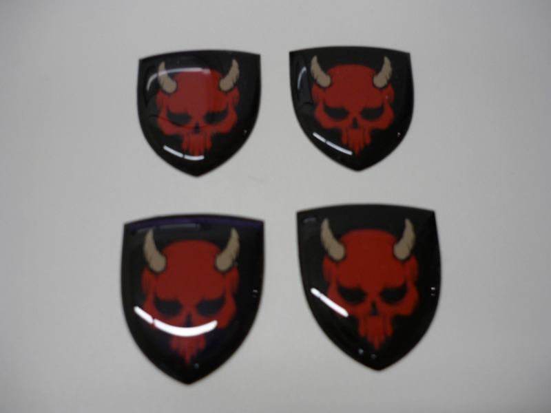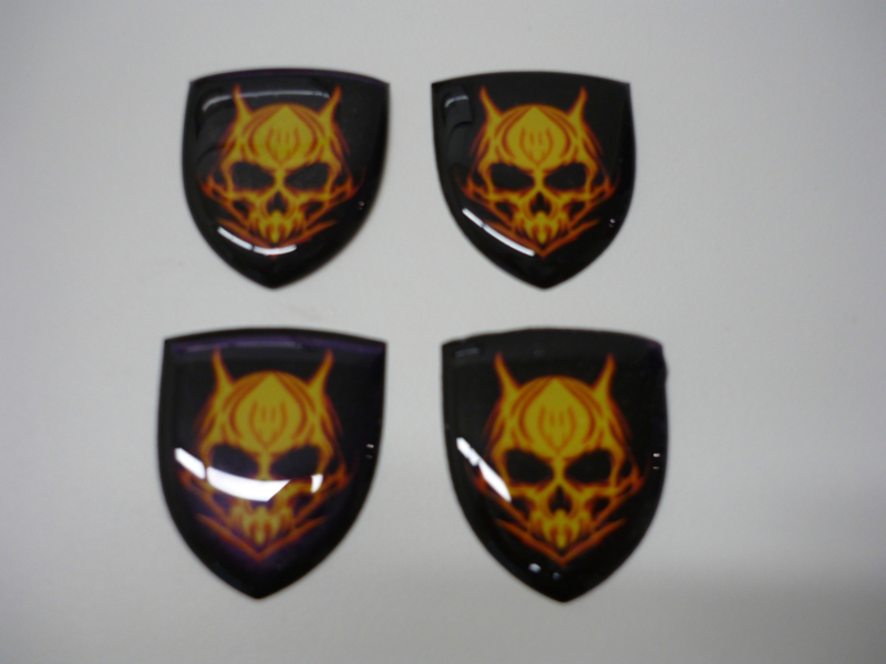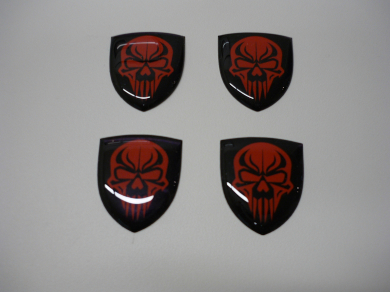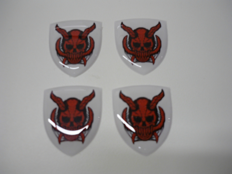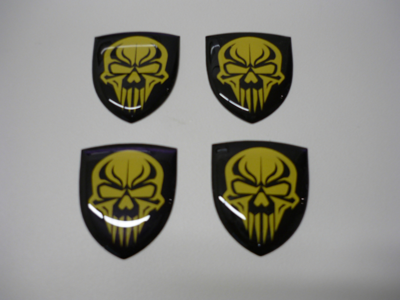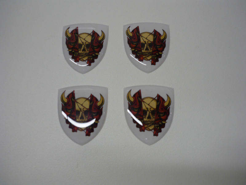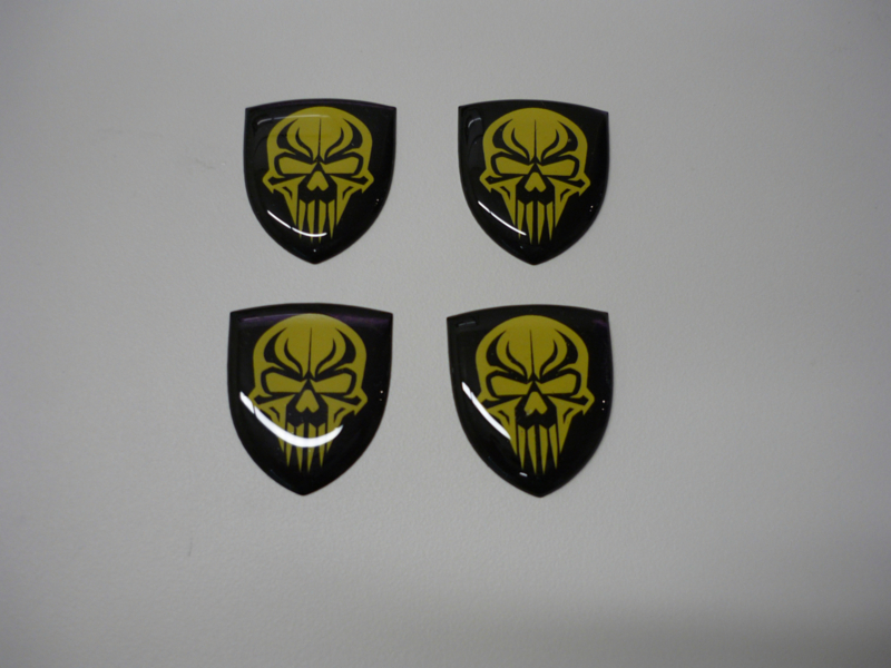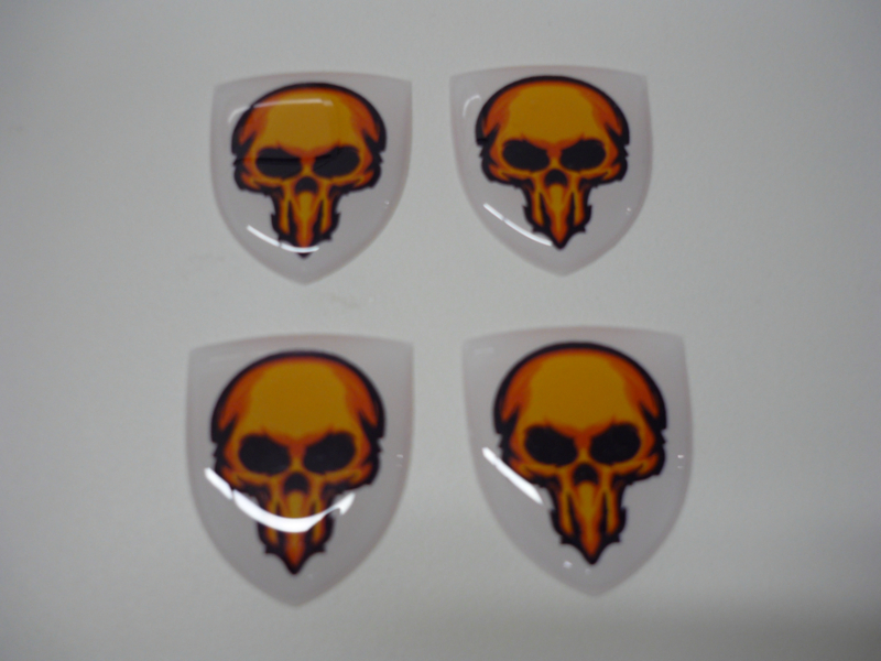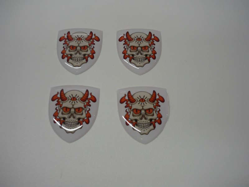 Skull design 4 doming 3D gel sticker set van 4 stuksSkull design 4 doming 3D sticker. Sticker wordt gemaakt op hoogwaardig vinyl fullcolour. 3D, Epoxy gel.