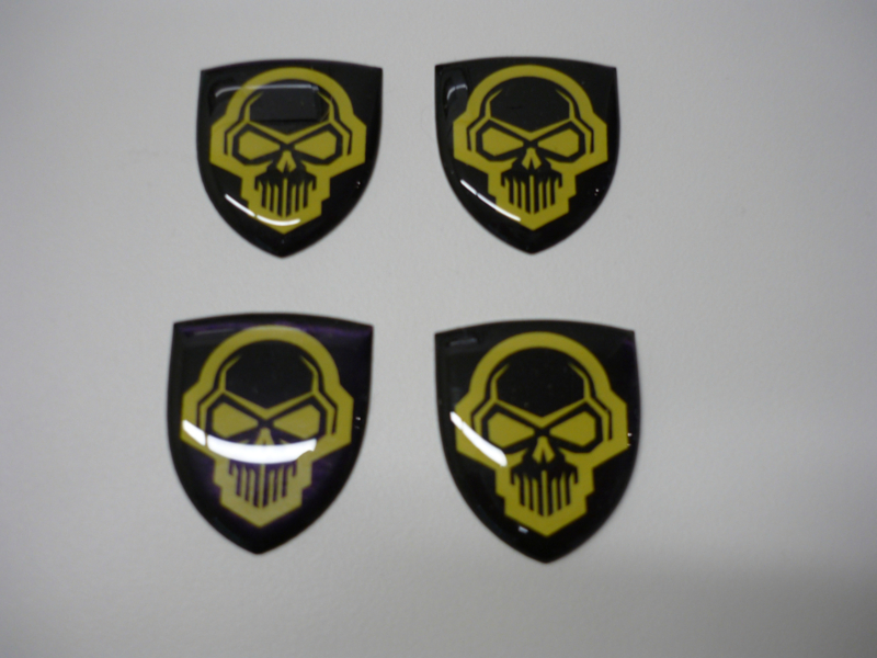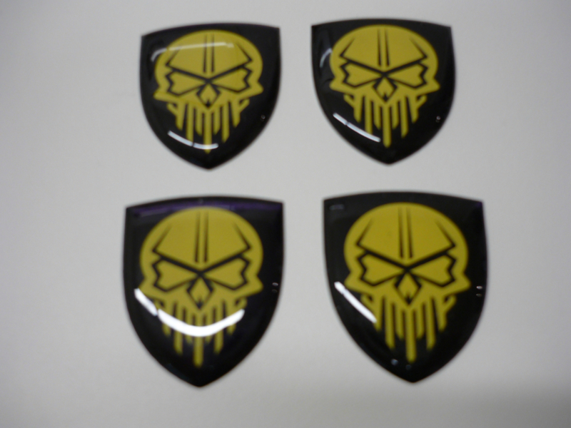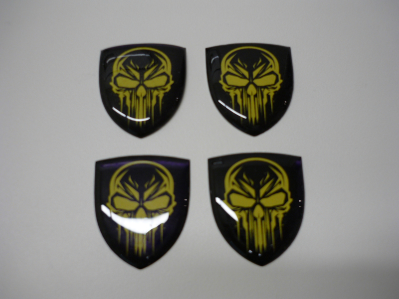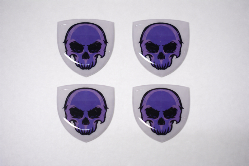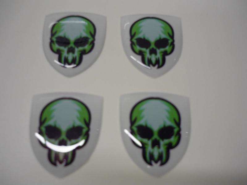 Skull design 1 doming 3D gel sticker set van 4 stuksSkull design 1 doming 3D sticker. Sticker wordt gemaakt op hoogwaardig vinyl fullcolour. 3D, Epoxy gel.