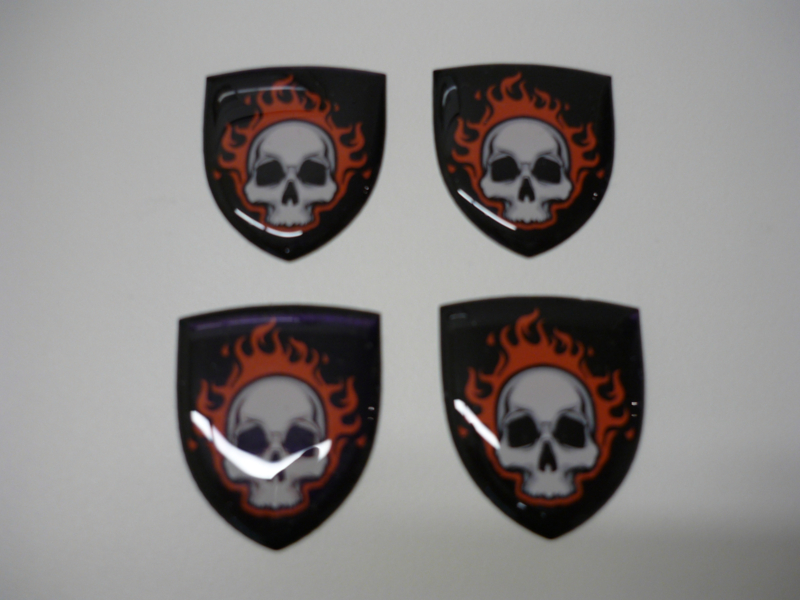 Skull design 7 doming 3D gel sticker set van 4 stuksSkull design 7 doming 3D sticker. Sticker wordt gemaakt op hoogwaardig vinyl fullcolour. 3D, Epoxy gel.