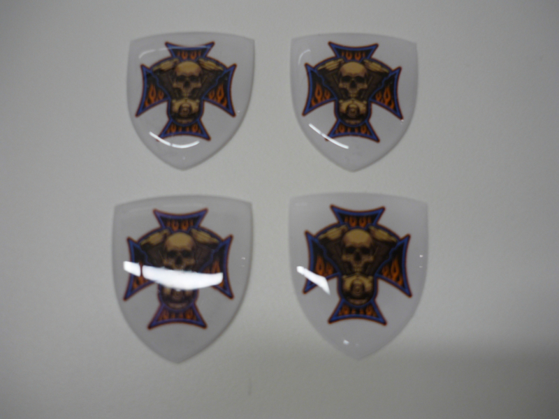 Skull design 13 doming 3D gel sticker set van 4 stuksSkull design 13 doming 3D sticker. Sticker wordt gemaakt op hoogwaardig vinyl fullcolour. 3D, Epoxy gel.