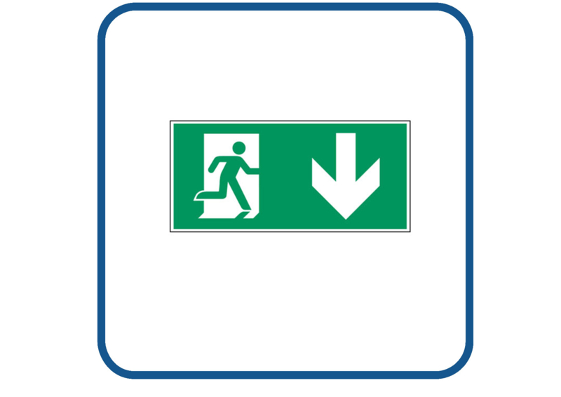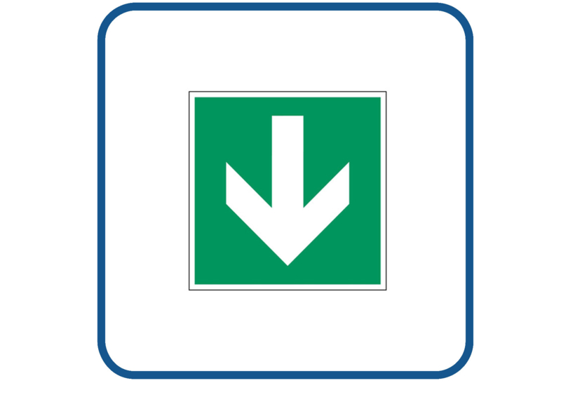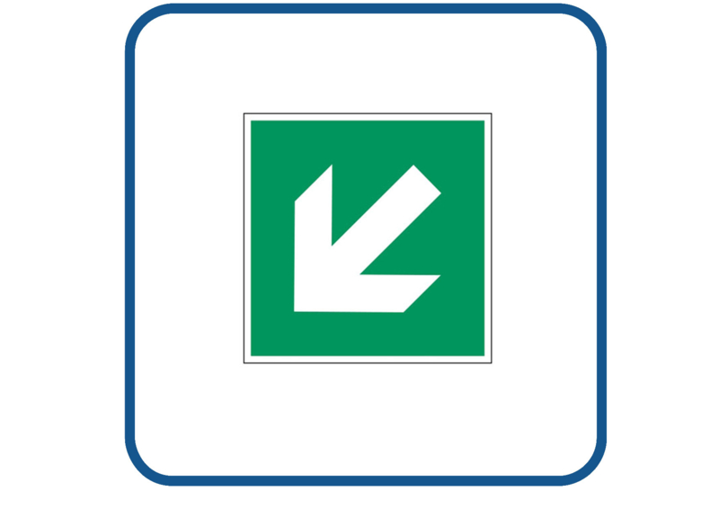 Full colour sticker wordt gemaakt op hoogwaardige vinyl. Deze sticker kan zowel binnen als buiten gebruikt worden.€ 0,85 - Vluchtweg links naar beneden sticker