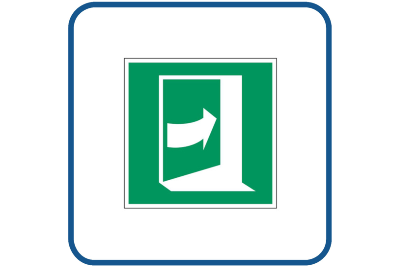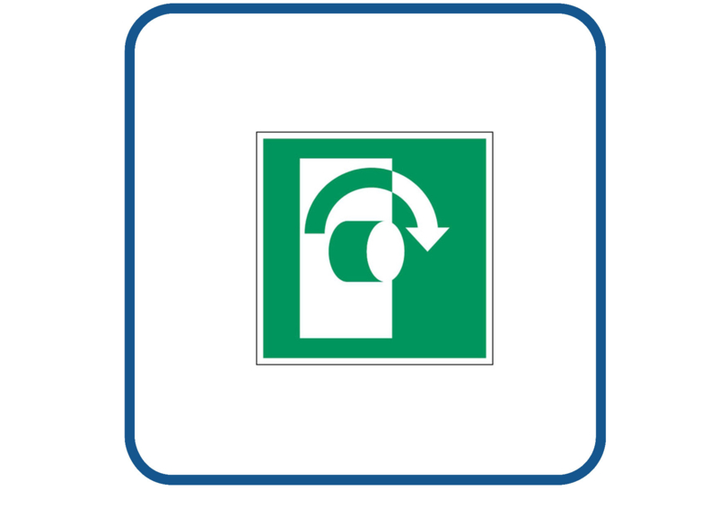 Full colour sticker wordt gemaakt op hoogwaardige vinyl. Deze sticker kan zowel binnen als buiten gebruikt worden.€ 0,85 - Draairichting nooddeur naar rechts sticker