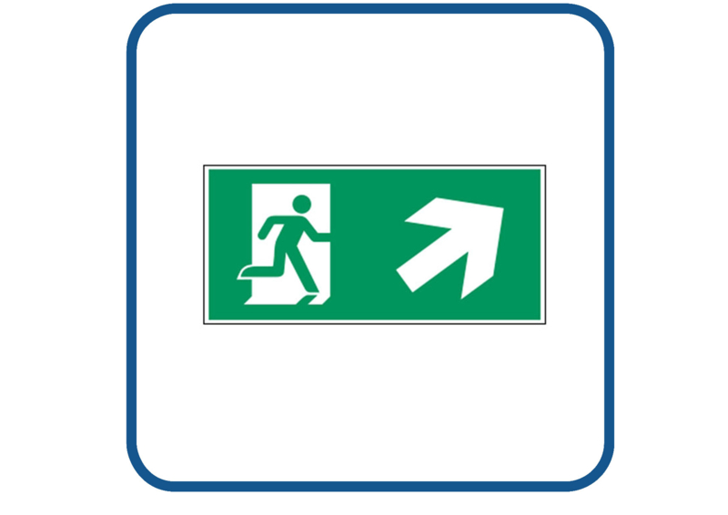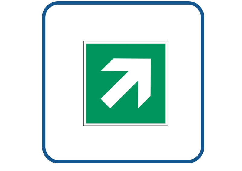 Full colour sticker wordt gemaakt op hoogwaardige vinyl. Deze sticker kan zowel binnen als buiten gebruikt worden.€ 0,85 - Vluchtweg schuin rechts naar boven sticker