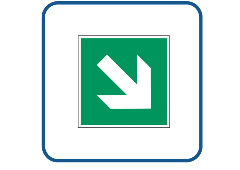 Full colour sticker wordt gemaakt op hoogwaardige vinyl. Deze sticker kan zowel binnen als buiten gebruikt worden.€ 0,85 - Vluchtweg schuin rechts naar beneden sticker